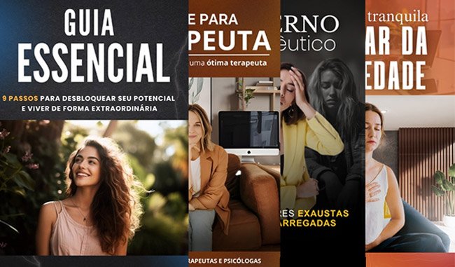 Também vou te entregar alguns E-books no formato PDF para você vender com 100% do lucro, ou até mesmo oferecer como bônus para quem fechar seu processo de terapia.